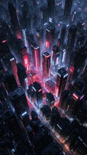 Cyberpunk metropolis with glowing red streets at night